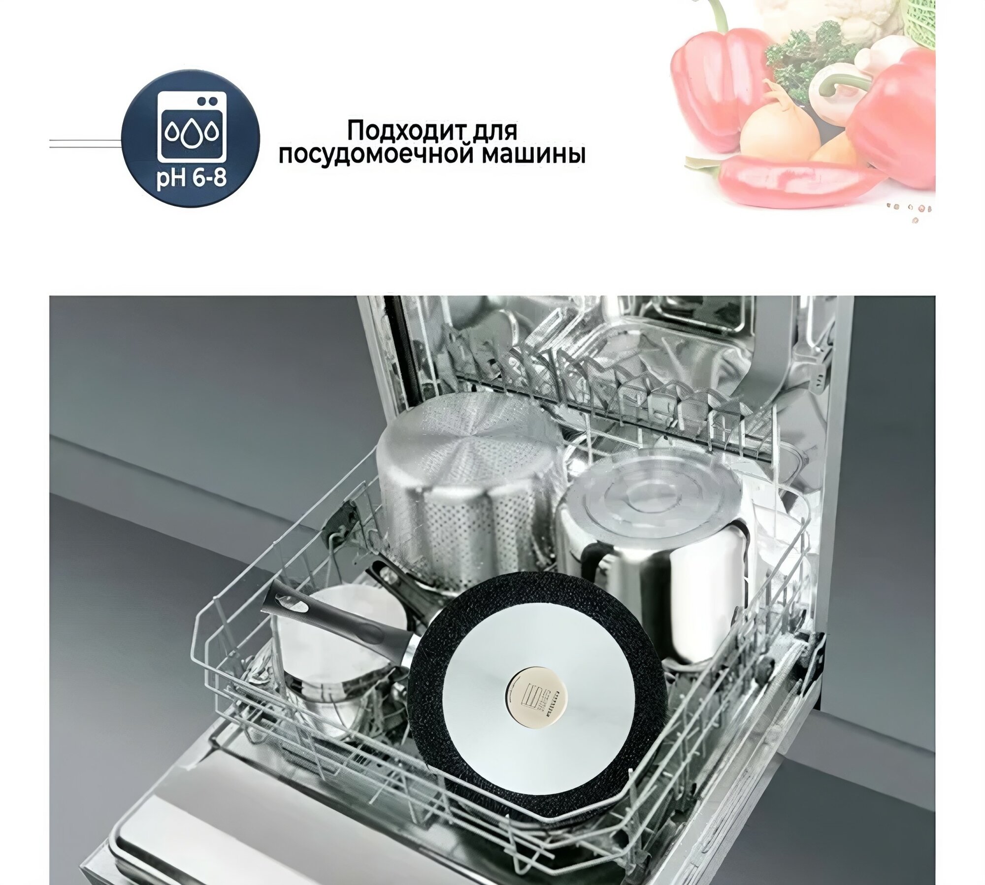 | Плюсы: | Подходит для индукционной плиты. Качественное антипригарное покрытие |