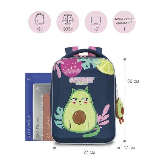 Школьный рюкзак GRIZZLY Rap-290-5 синий, 27х39х17 интересное: