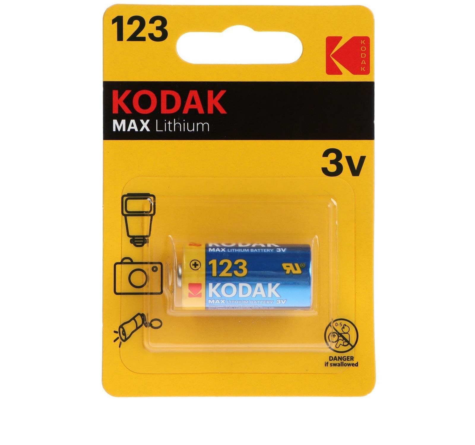 Батарейка Kodak Max Lithium CR123, в упаковке: 1 шт.