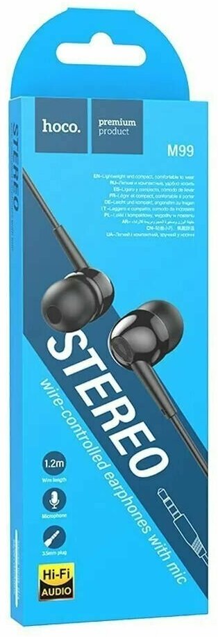 Проводные наушники вакуумные HOCO M99 Celestial, AUX Jack 3.5mm, 1.2 м, черный