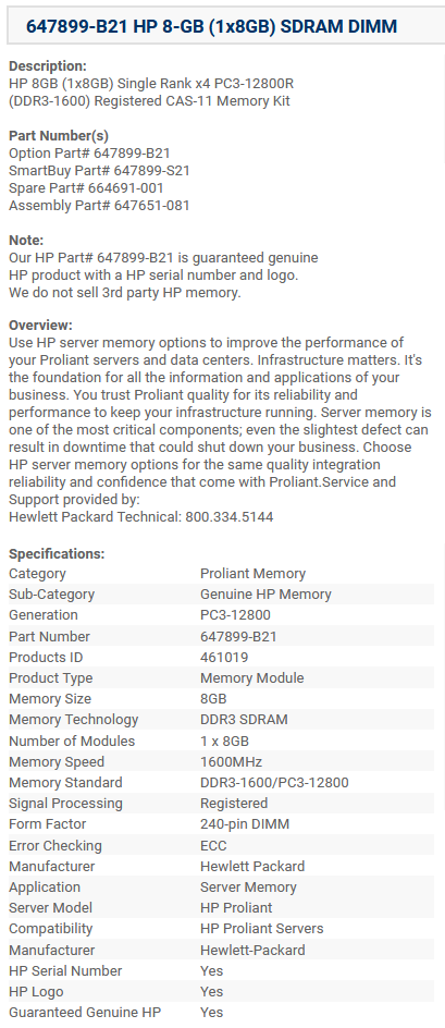 Ниже Вы можете прочитать отзывы на Оперативная память HP 8Gb 1Rx4 REG ECC PC3-12800R-11 [647899-B21], ознакомится с подробными характеристиками, посмотреть интересные обзоры и фотографии на Оперативная память HP 8Gb 1Rx4 REG ECC PC3-12800R-11 [647899-B21].