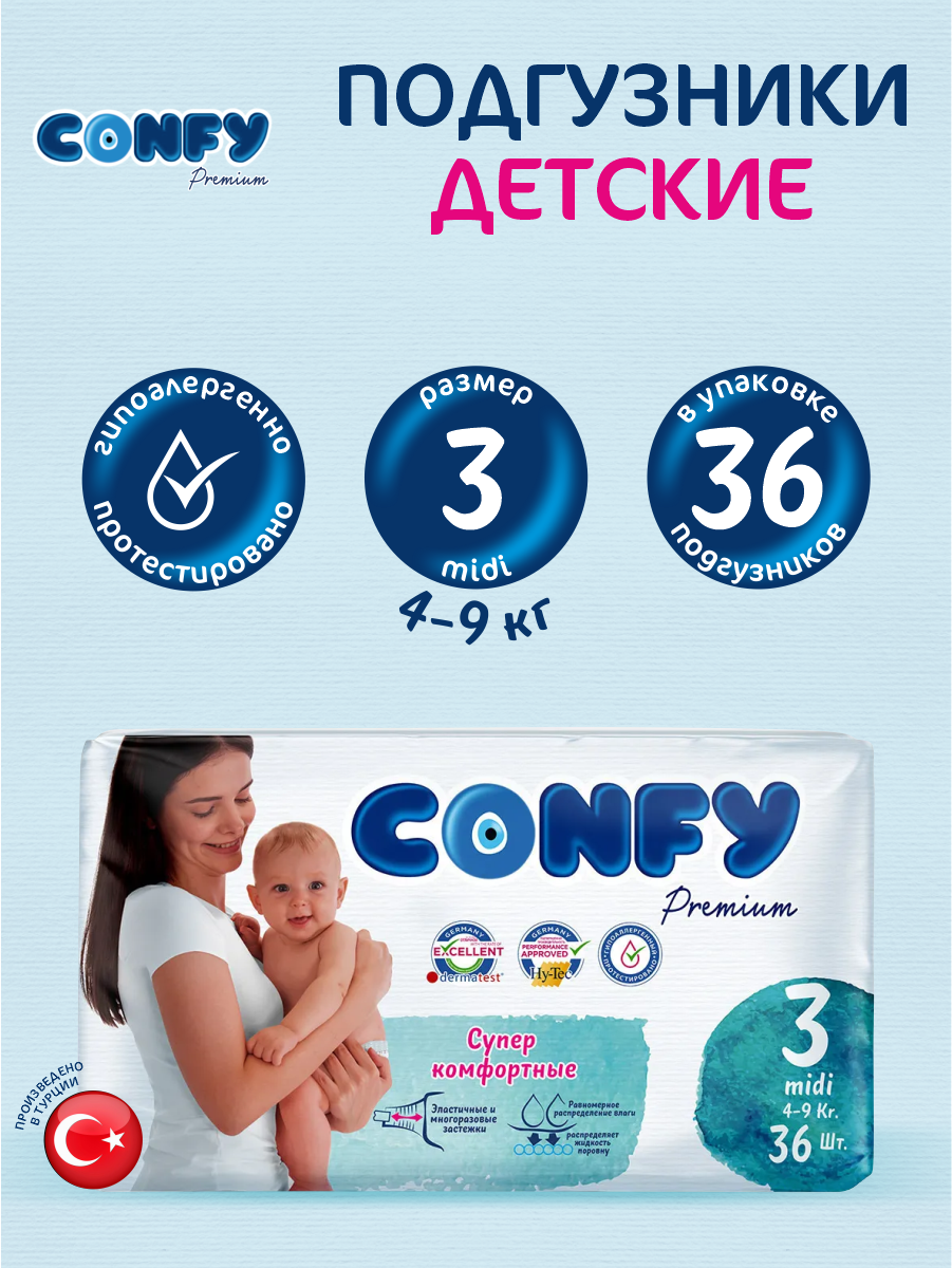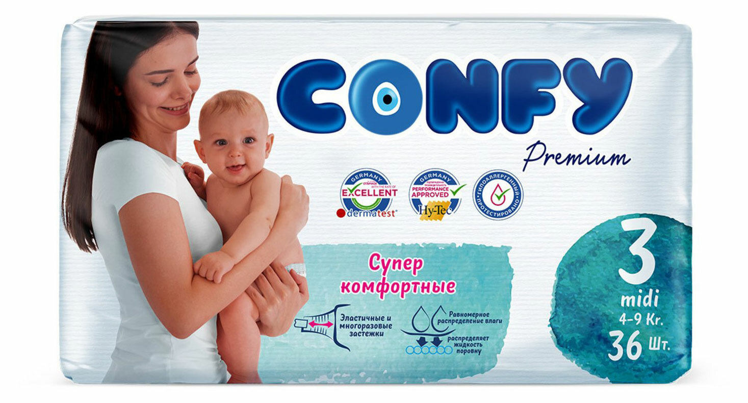 Подгузники Confy Premium 4-9 кг (размер 3) 36 шт 10137584 .