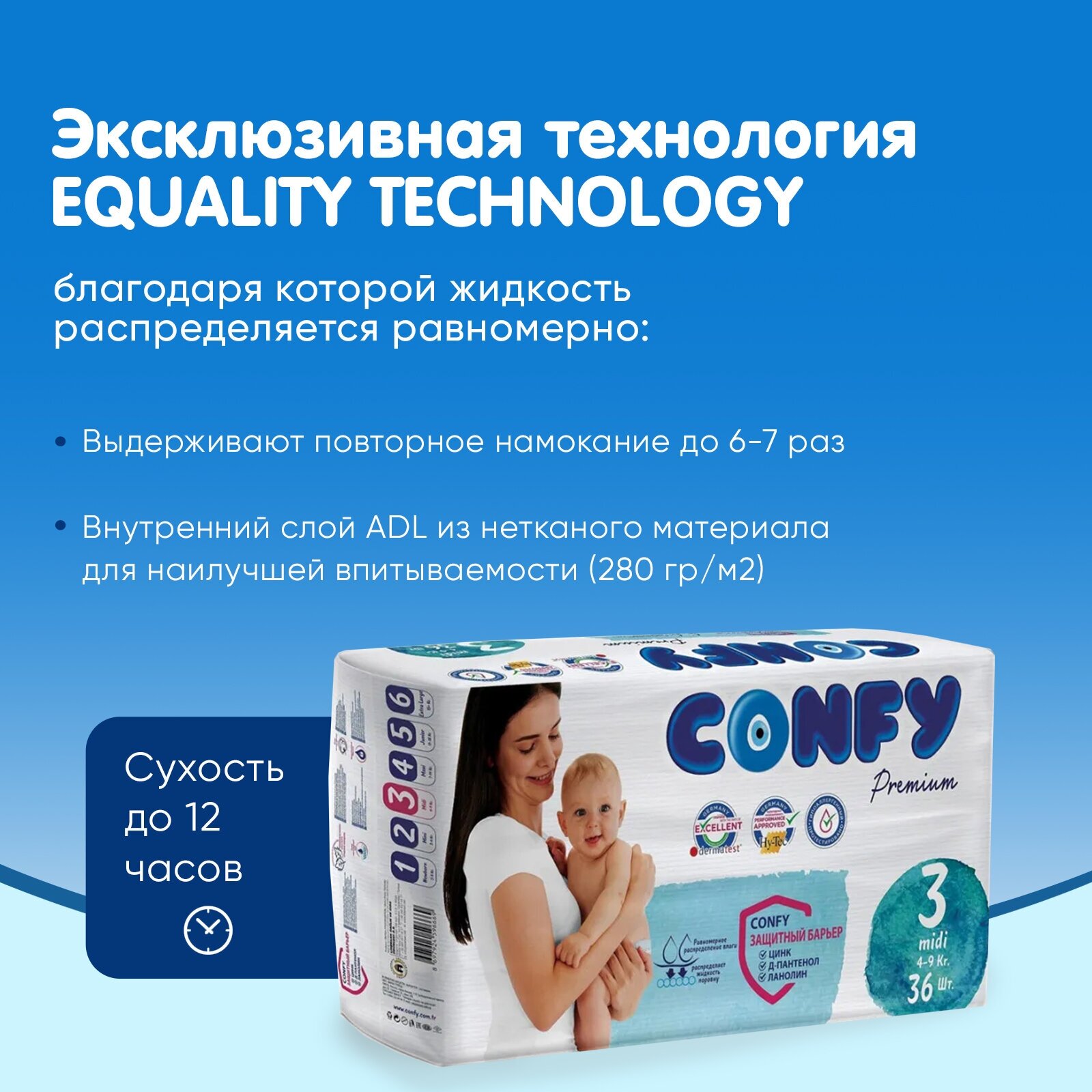 СохранитьПодгузники детские CONFY Premium, MIDI, 36 шт интересное: