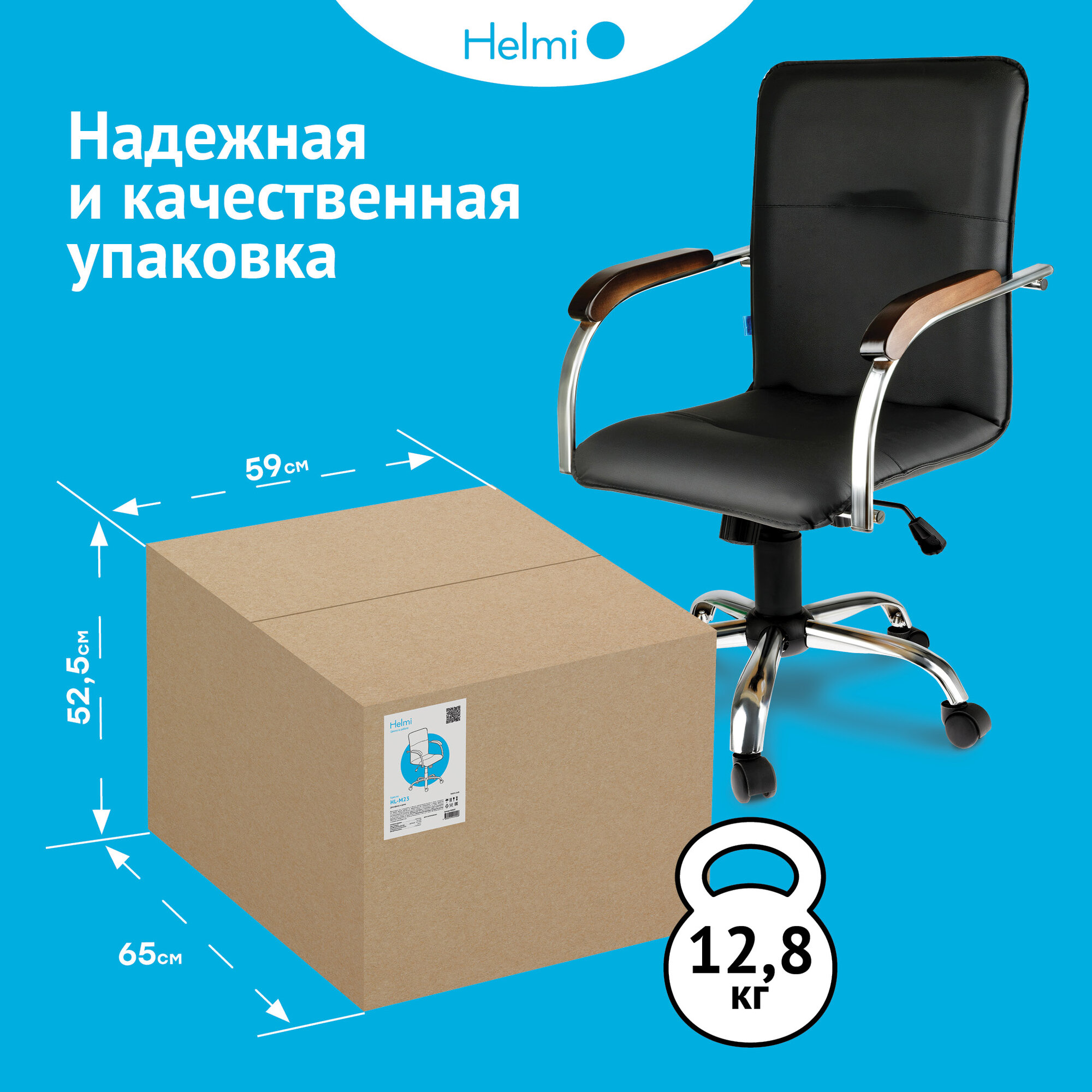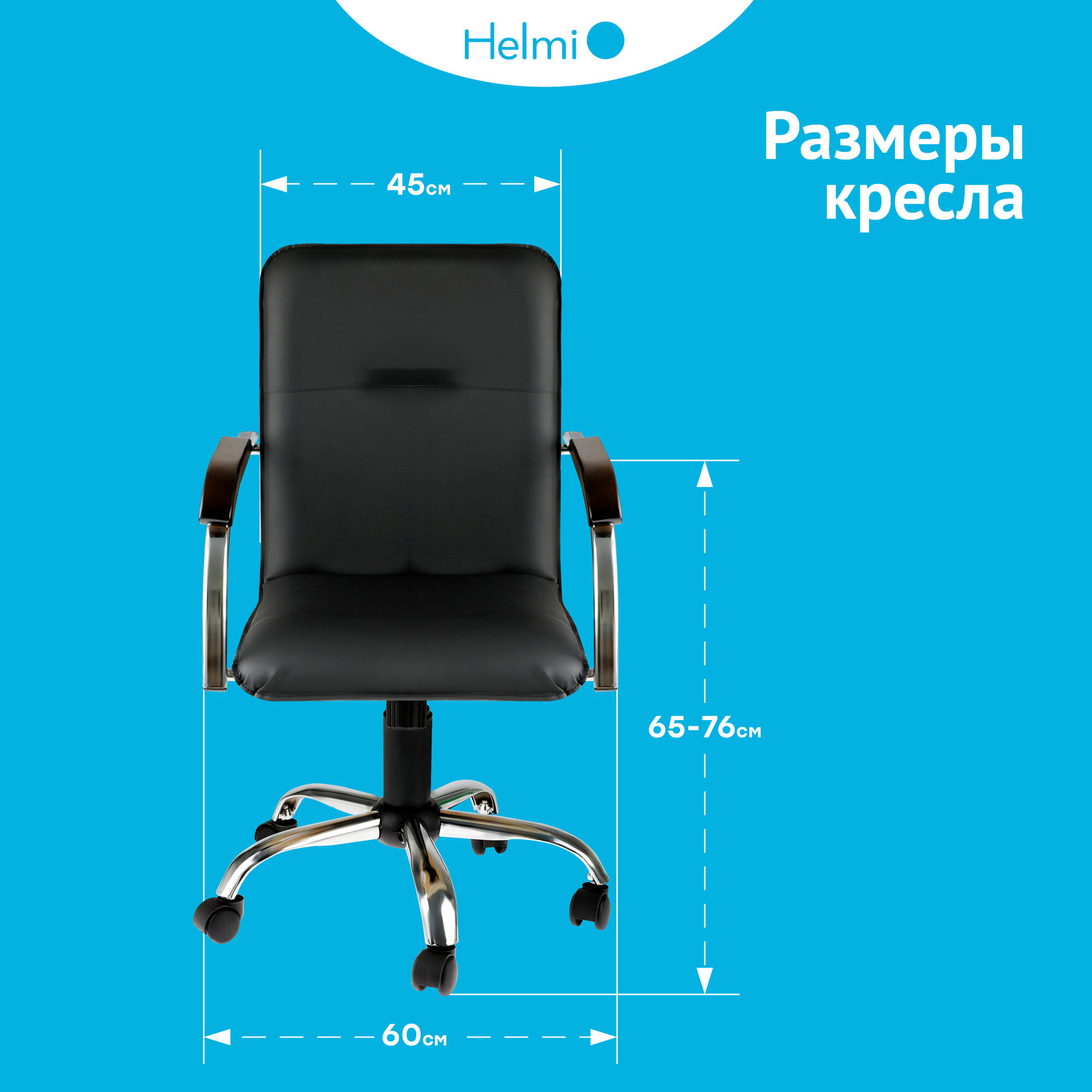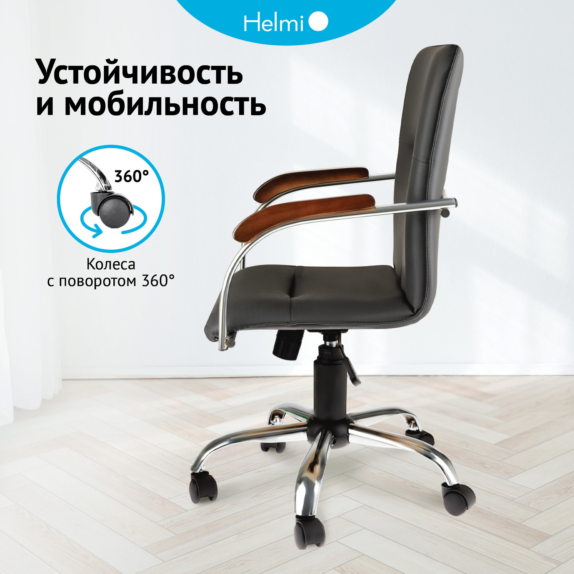 Кресло офисное HELMI HL-M23 "Самба G/Samba G", CH, экокожа, черный, орех, механизм качания BOX1