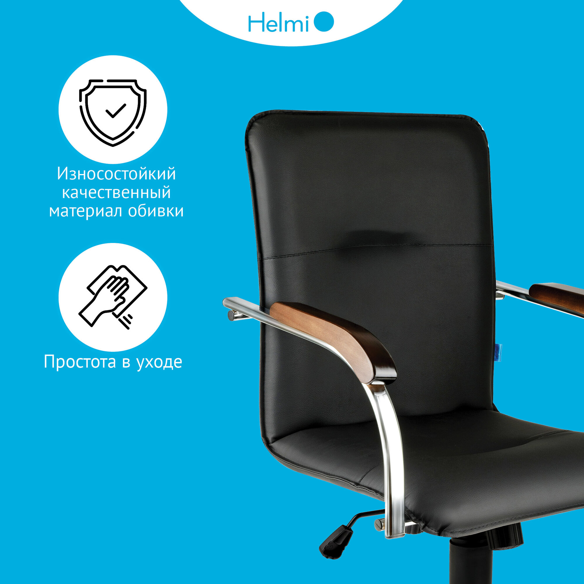 Купить Кресло оператора Helmi HL-M23, CH, экокожа, черный, орех, механизм качания (344617)