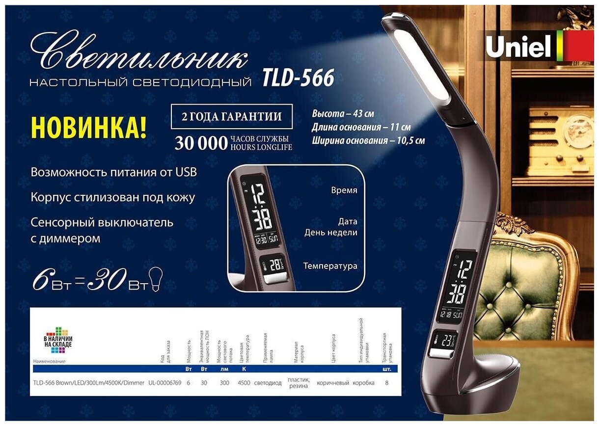 Ниже Вы можете прочитать отзывы на Настольная лампа (UL-00006473) Uniel TLD-565 Brown/LED/360Lm/3000-6000K/Dimmer/WR, ознакомится с подробными характеристиками, посмотреть интересные обзоры и фотографии на Настольная лампа (UL-00006473) Uniel TLD-565 Brown/LED/360Lm/3000-6000K/Dimmer/WR.