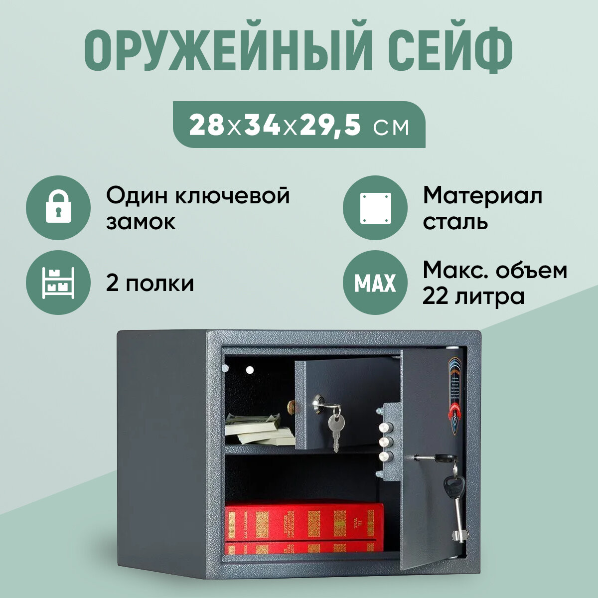 Сейф оружейный AIKO "TT-28", 280х340х295 мм, 8,5 кг, патронное отделение, ключевой замок, 290794