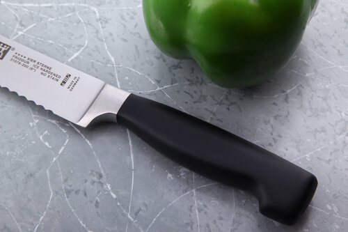 Нож для хлеба Zwilling Twin Four Star, нержавеющая сталь, лезвие 20 см, серебристый/чёрный