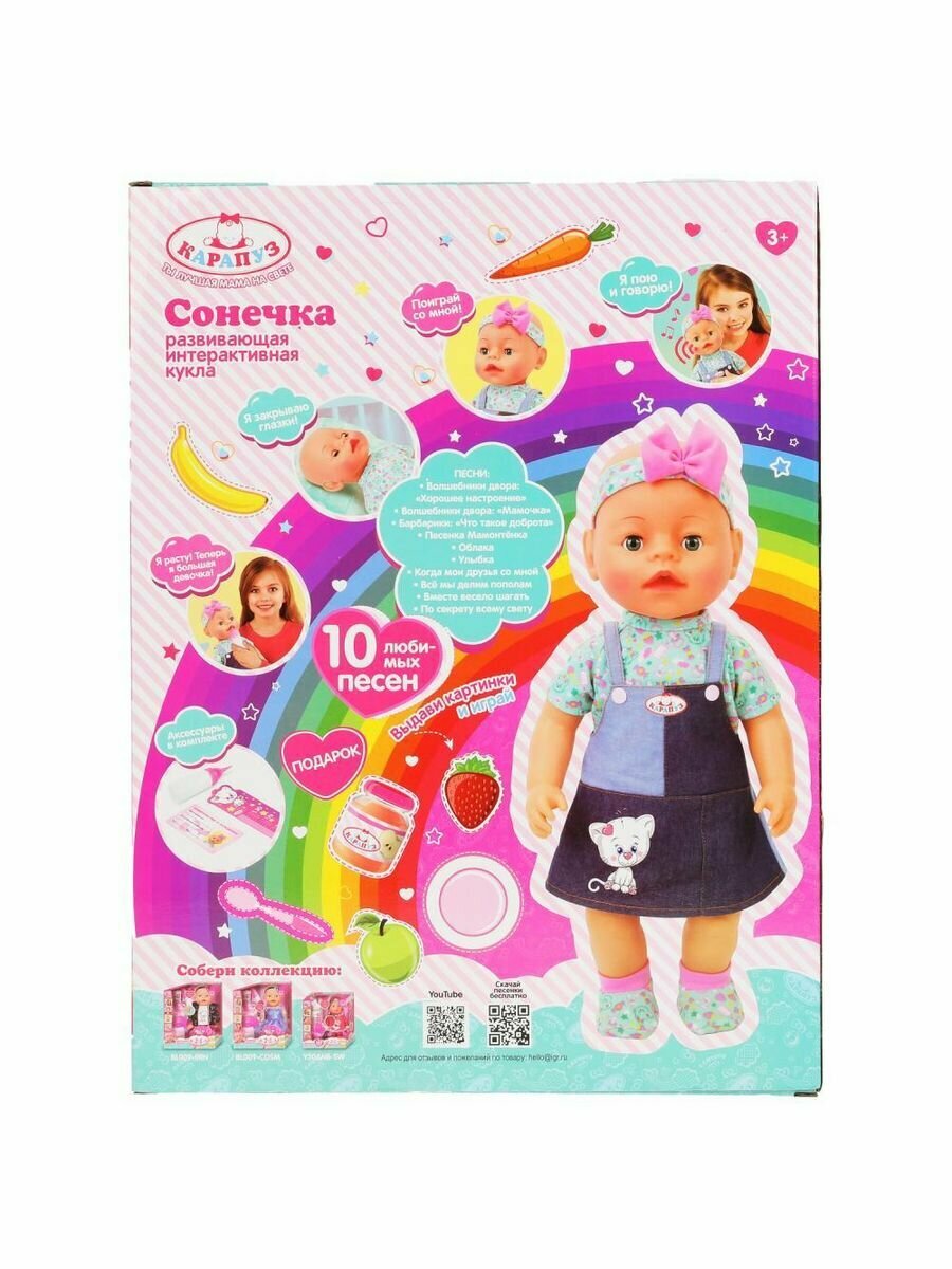 Карапуз BAE-7299-RU-20 барбарики Сонечка 40см, растущий, линейка, 5 аксессуаров