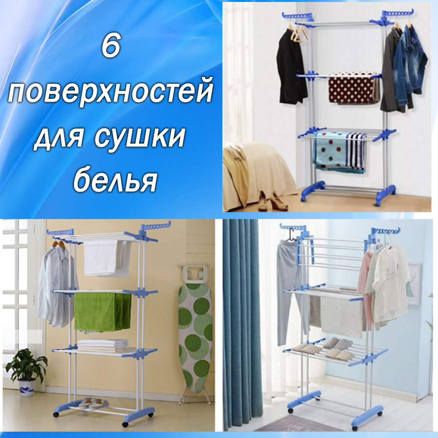 Сушилка для белья, напольная передвижная раскладная вертикальная раздвижная сушилка "Three layers of clothes hanger / Stainless Steel / NO. TW115" 40кг интересное: