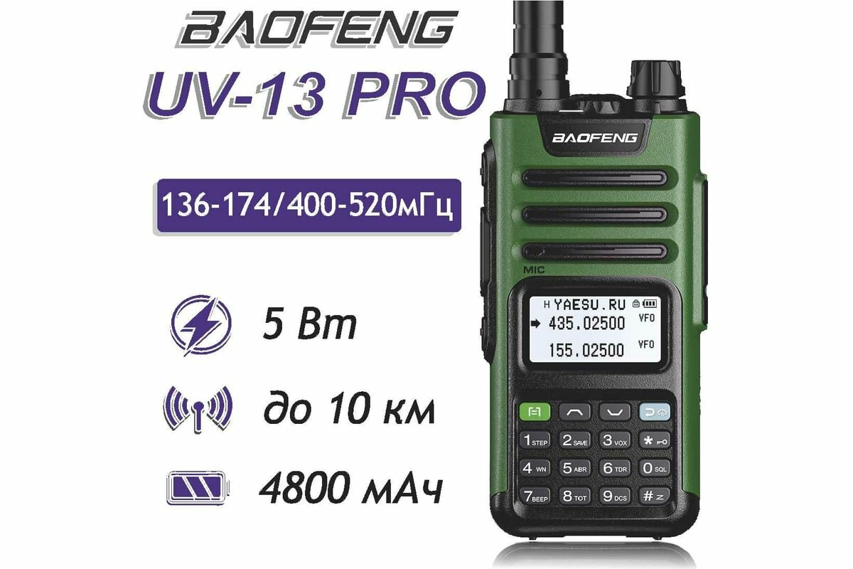 Baofeng Рация UV-13 PRO ( 136-174/400-520) МГц черно-зеленый 00029152 интересное: