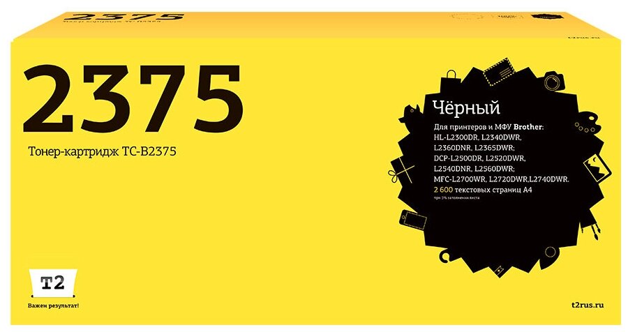картриджи T2 TC-B2375 ( Brother Tn-2375) для Hl-l2300dr/l2340dwr/dcp-l2500dr/l2520dwr/mfc-l270 .