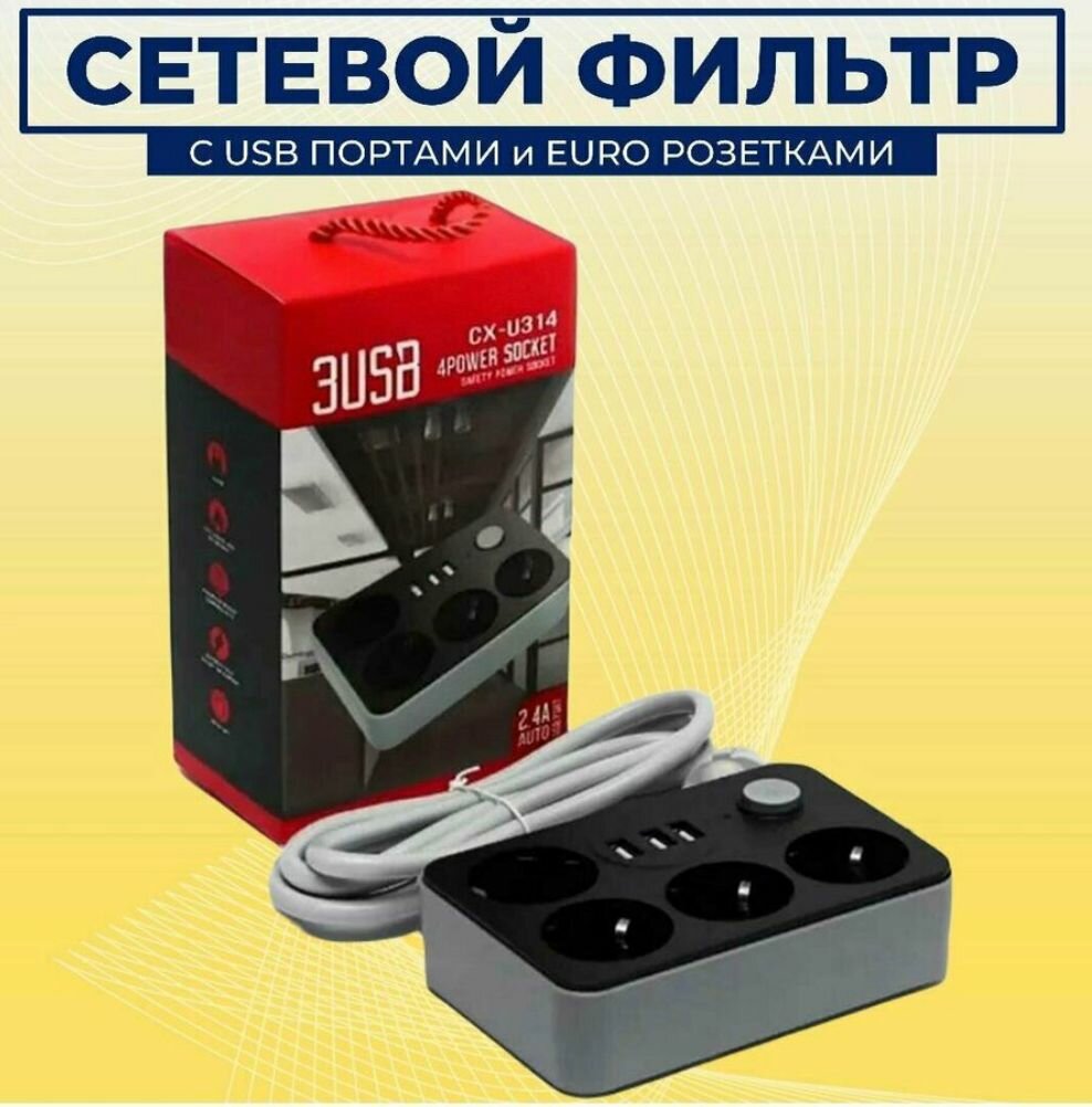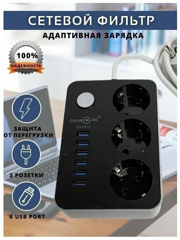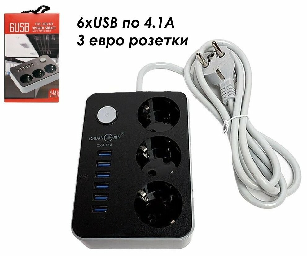 Сетевой фильтр (удлинитель) 3 розетки + 6 USB (CX-U613) 2 м интересное: