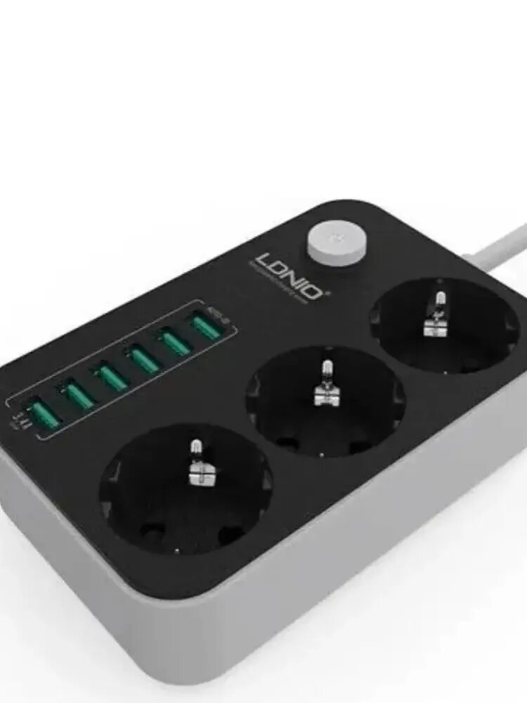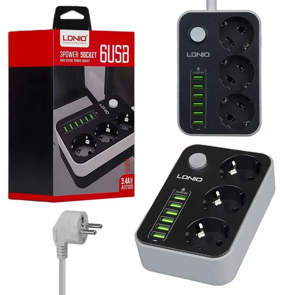 Сетевой фильтр, удлинитель, сетевой удлинитель с 3 розетками, 6 usb входов, выключатель на корпусе BM