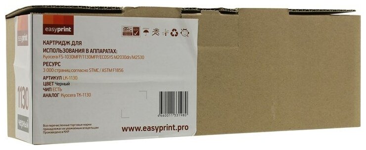 Тонер-картридж EasyPrint LK-1130 для Kyocera Fs-1030mfp/1130mfp. Чёрный. 3000 страниц. с чипом