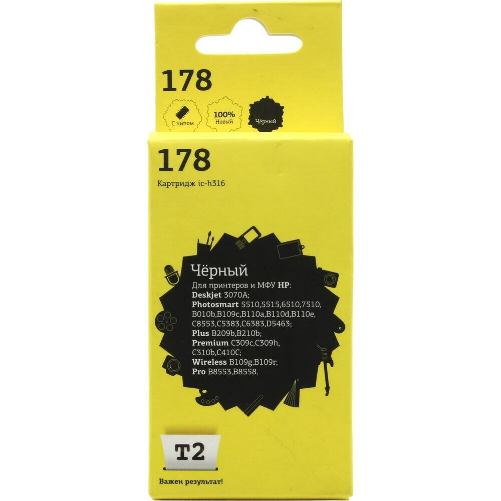 Картридж T2 №178 для HP Deskjet 3070A/Photosmart 5510/6510/7510/B110/C8583 черный 250стр CB316HE Ic-h316