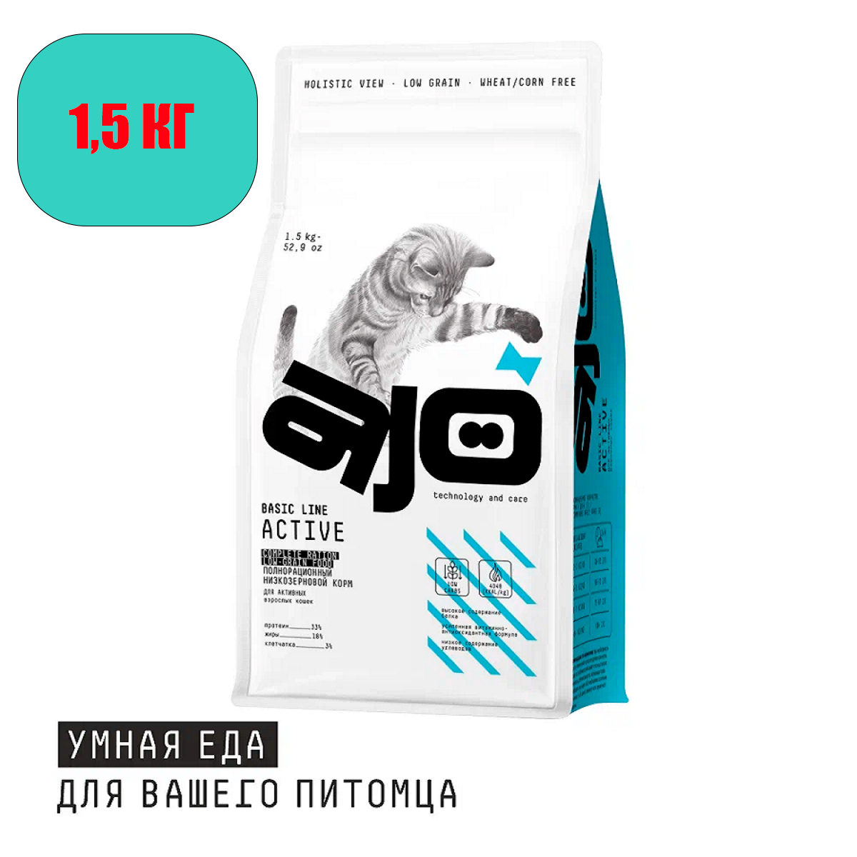 60068 AJO Аctive корм низкозерновой д/активных кошек 1,5кг