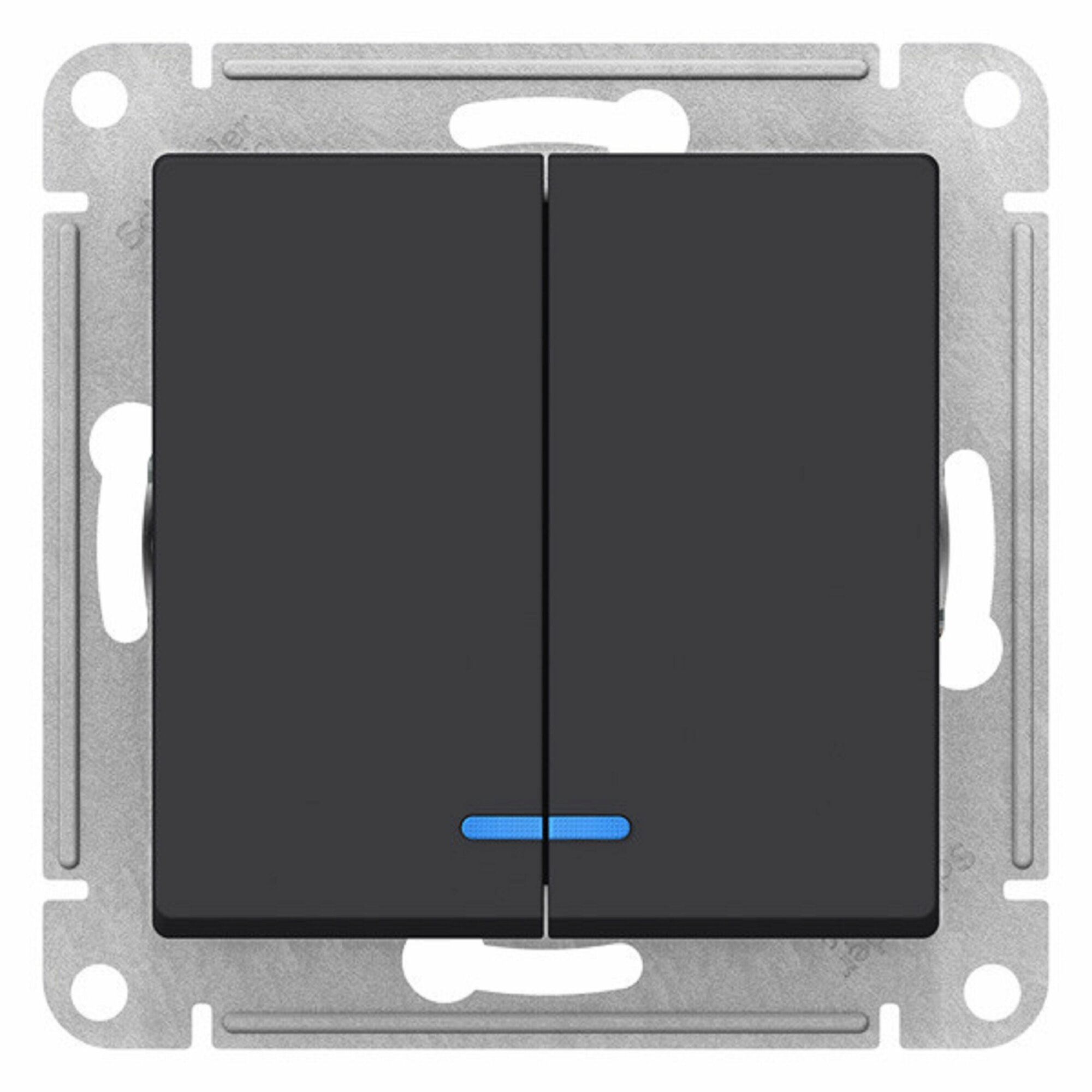 Купить ATN001053 Выключатель 2-клавишный Systeme Electric AtlasDesign с подсветкой, скрытый монтаж, карбон