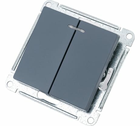 10 шт. Systeme Electric AtlasDesign Карбон Выключатель 2-клавишный с подсветкой, сх.5а, 10АХ, механизм, ATN001053