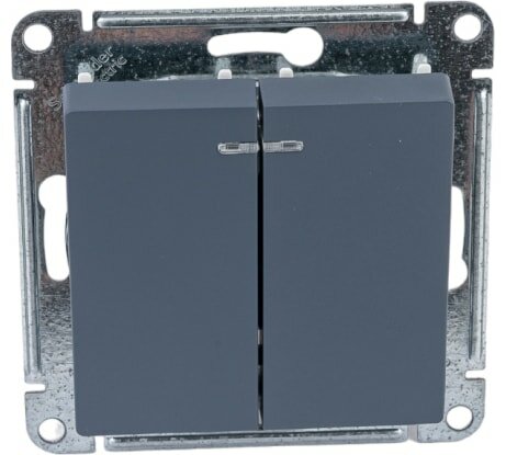 Механизм выключателя 2-кл. СП AtlasDesign 10А IP20 (сх. 5а) 10AX с подсветкой грифель SchE ATN000753 (9шт. в упак.)