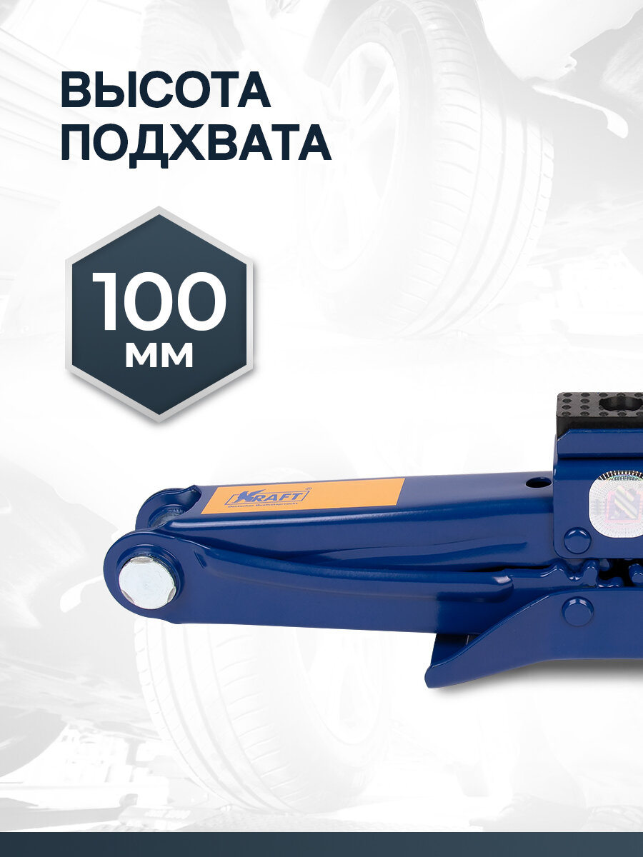 Домкрат ромбический KRAFT KT 800072, с трещоточной рукояткой, 100 мм - 400 мм, 2 т