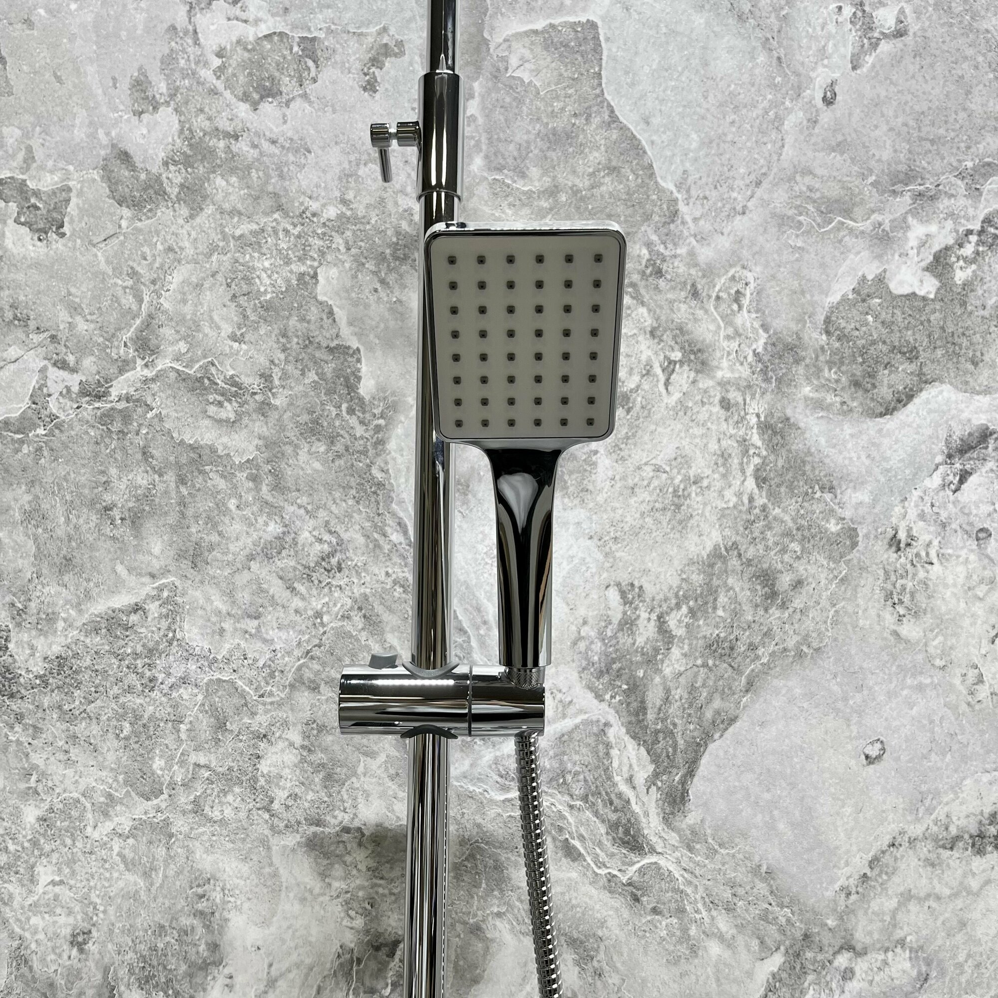 | Комплектация | Душевая система: верхний душ / держатель для лейки / душевая лейка / душевая штанга / излив / кронштейн для верхнего душа / переключатель потоков / Смеситель / шланг для душа. Смеситель: смеситель / гибкая подводка / паспорт изделия / Гарантийный талон. |