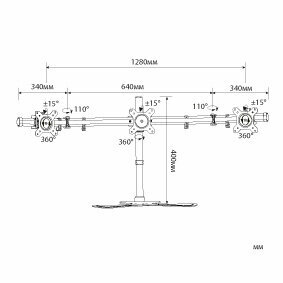 Cactus Крепления для проекторов CS-VM-MP330S-AL серебристый Кронштейн для 3-х мониторов 15"-24" макс.8кг настольный наклон