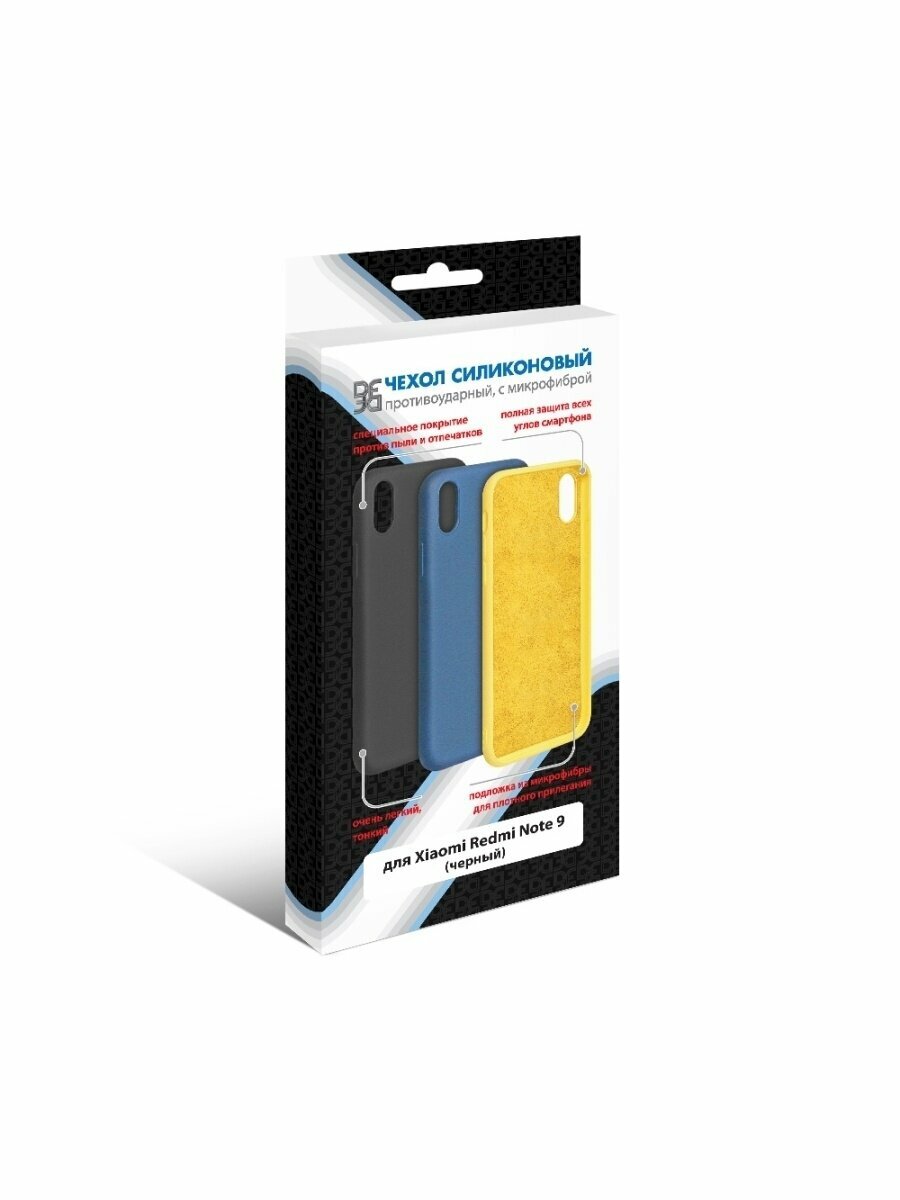 Чехол с микрофиброй DF для Redmi Note 9 Silicone Black xiOriginal-11