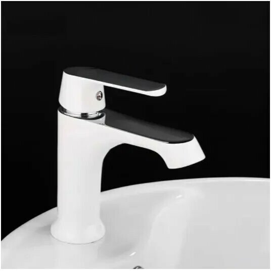 Смеситель для раковины Haiba HB10804, монолитный излив с аэратором, материал: латунь, цвет: белый/хром.