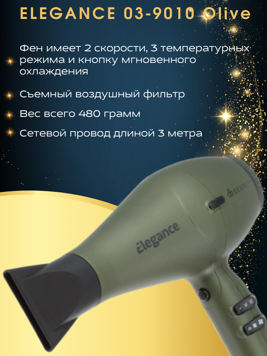 Купить Фен Elegance оливковый, ионизация, 2 насадки, 2300 Вт