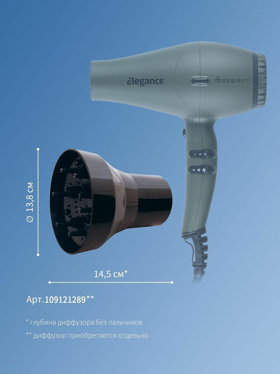 DEWAL, Фен DEWAL PRO ELEGANCE, оливковый, 2300Вт, ионизация, 2 насадки
