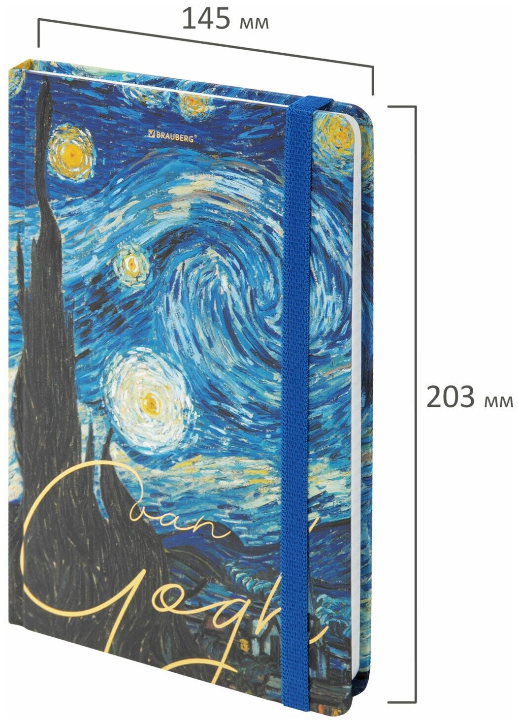 Купить Блокнот с резинкой Brauberg в клетку 96 л, А5, твердая обложка с фольгой, "Van Gogh" (113728)