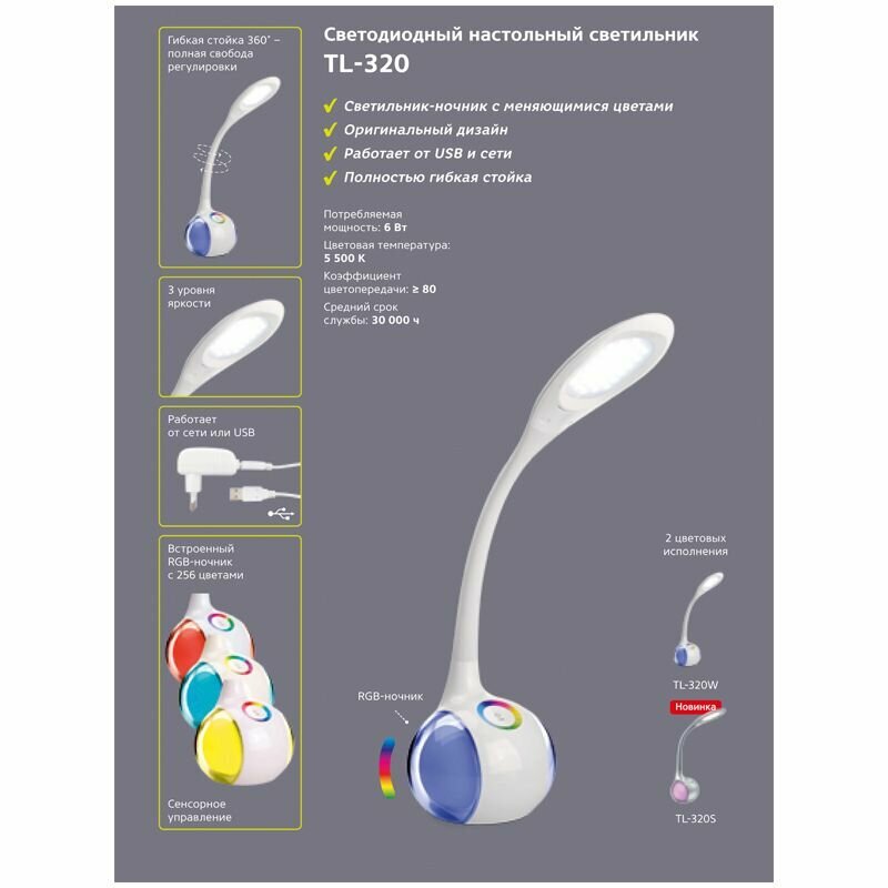 TL-320W, белый, настольный светодиодный светильник c RGB-ночником интересное: