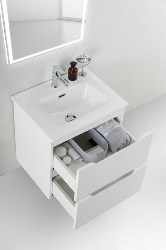 Тумба с раковиной для ванной Кристалл 50 белая.