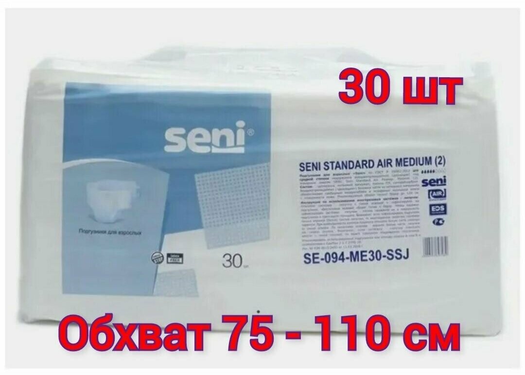 Подгузники памперсы для взрослых Seni Standart Air Medium 2 - 30 штук (размер M) 75-110 см (5 капель). Сени Стандарт Эйр Медиум 2 для лежачих больных дышащие. интересное: