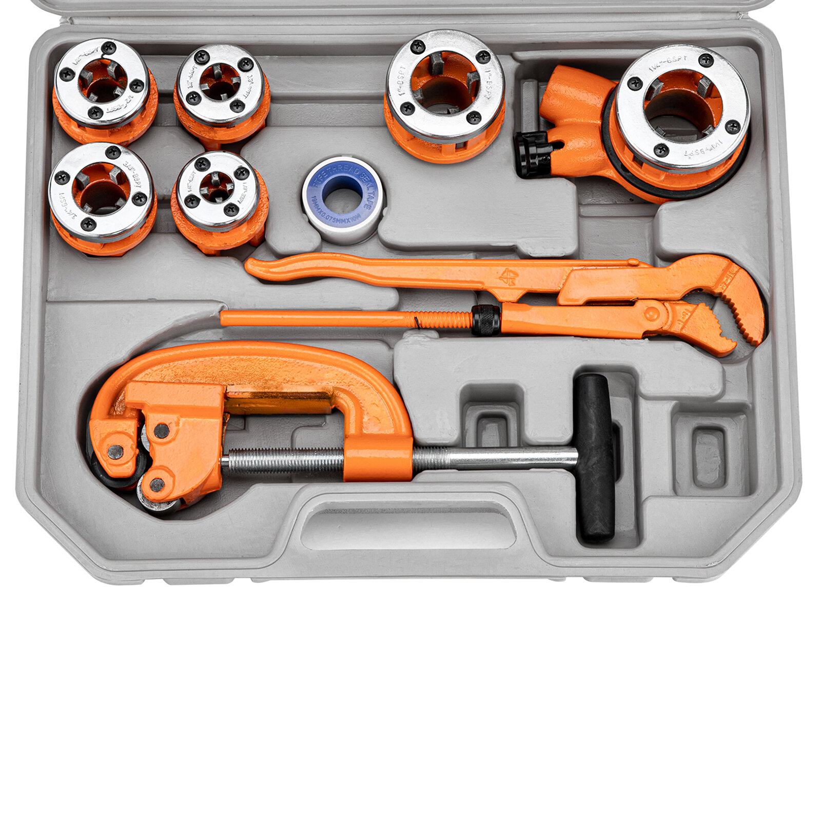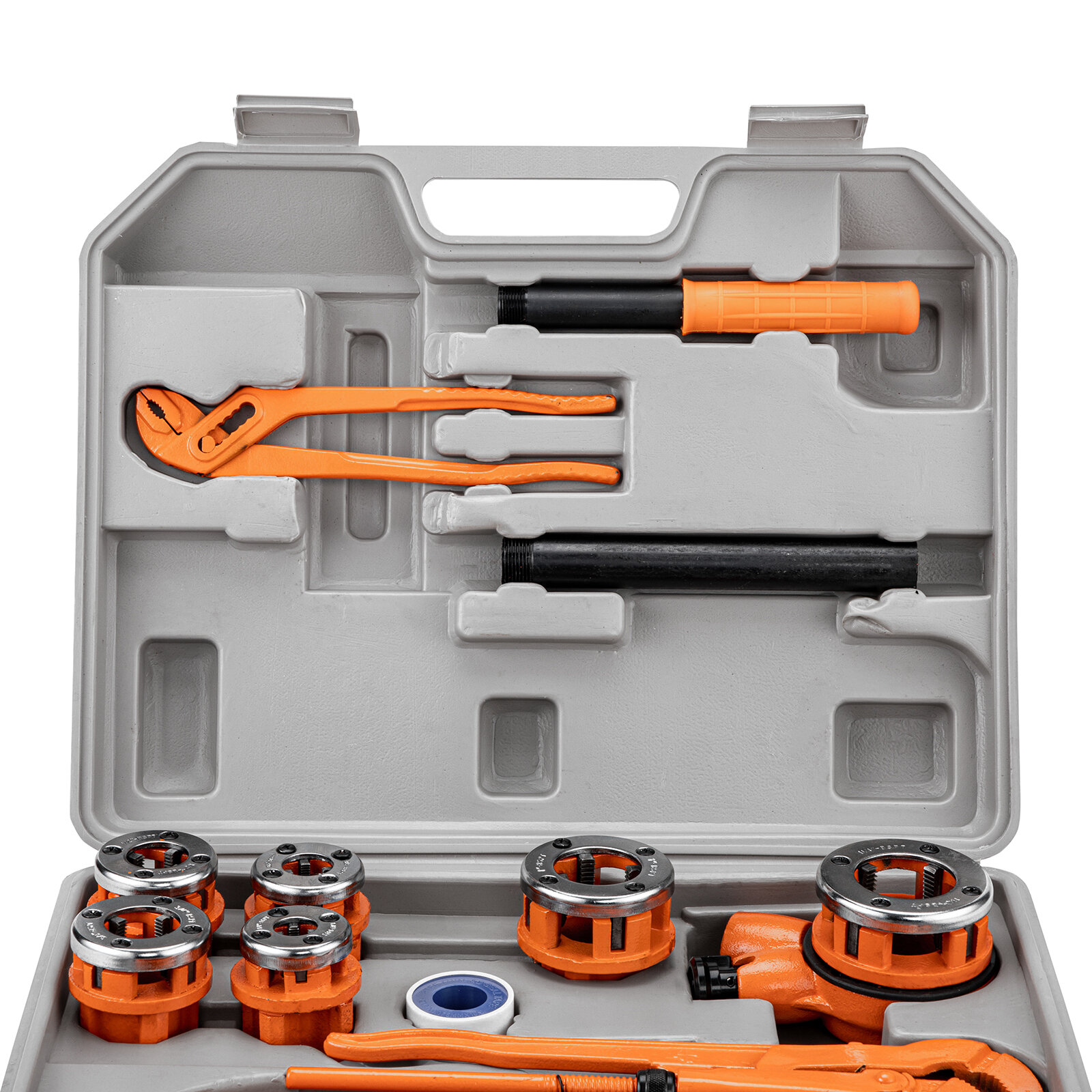 | Подробная комплектация | клуппы, плашкодержатель с трещоткой, клещи, ФУМ лента, удлинитель, ключ трубный, труборез |
