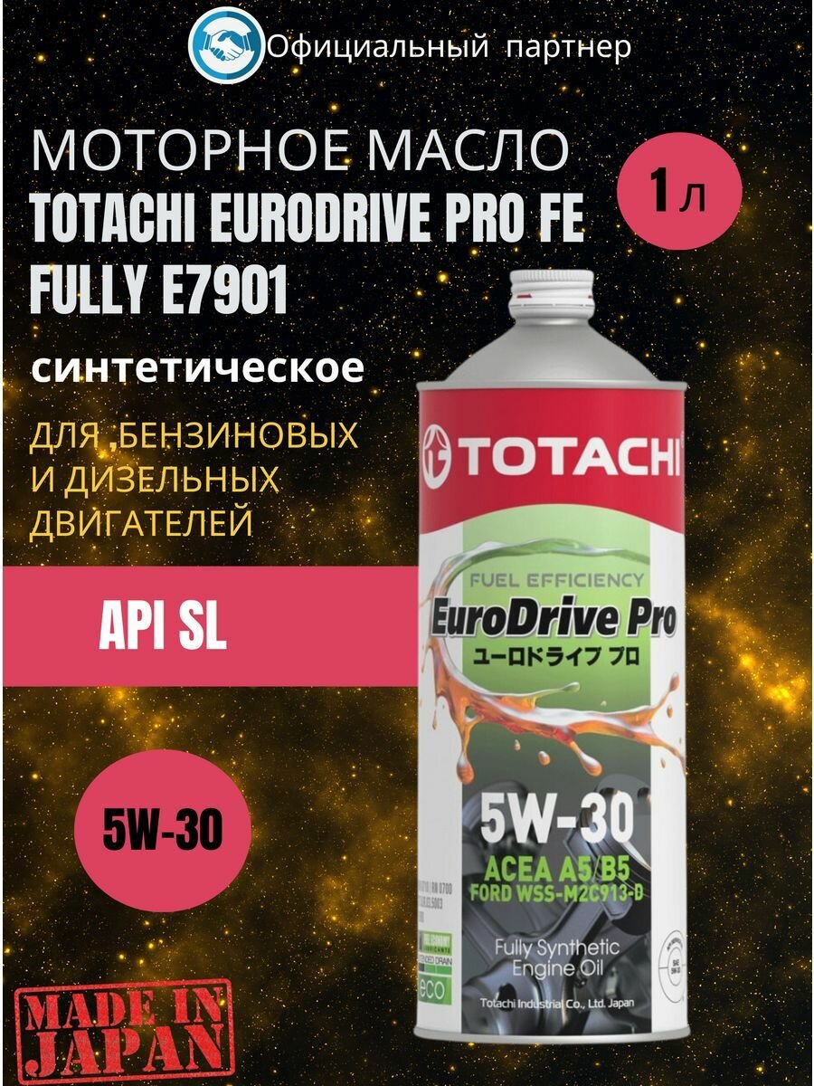 Масло моторное 5w-30 totachi 1л синтетика eurodrive pro fe api sl, acea a5/b5 totachi e7901