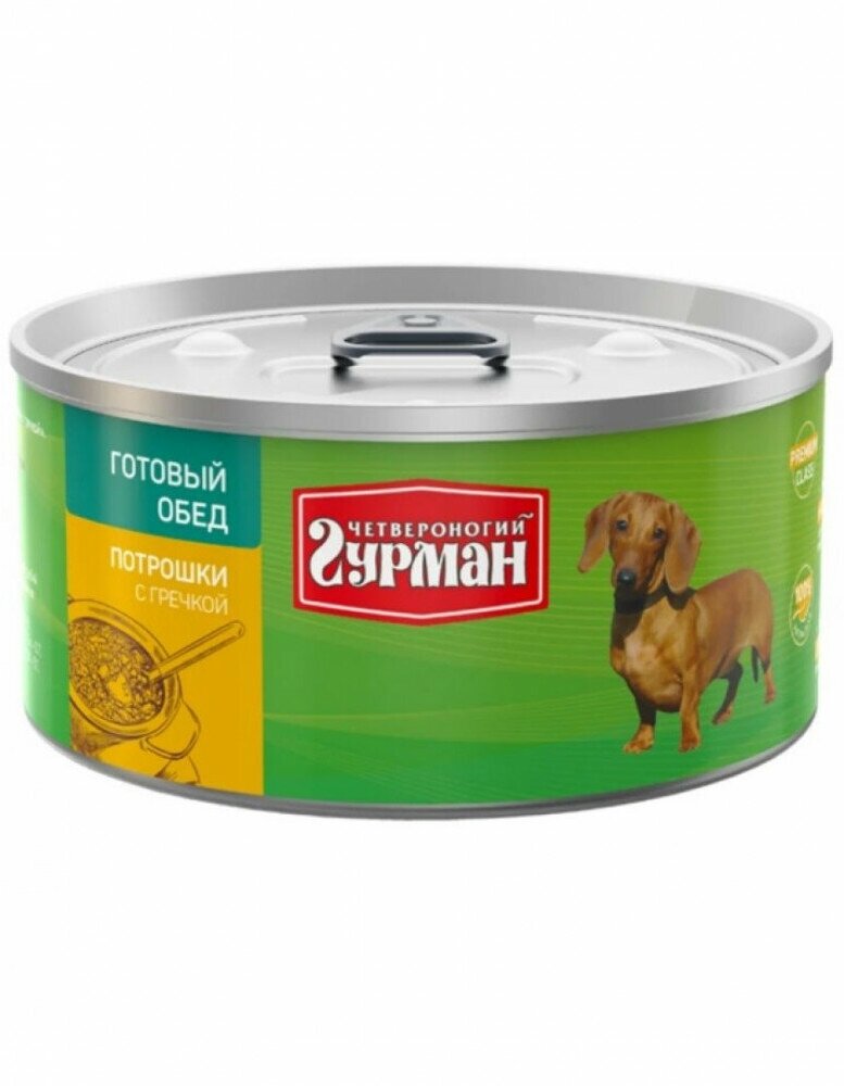 Четвероногий Гурман Готовый обед консервированный корм с потрошками и гречкой для собак - 325 г (12 шт)