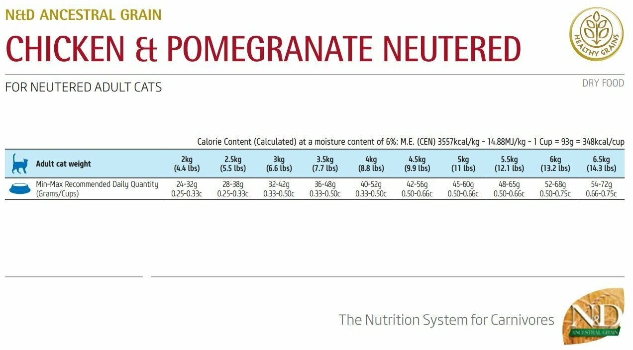 Сухой корм Farmina N&D Ancestral Grain Neutered, низкозерновой, для стерилизованных кошек и кастрированных котов, курица с гранатом, 1.5 кг