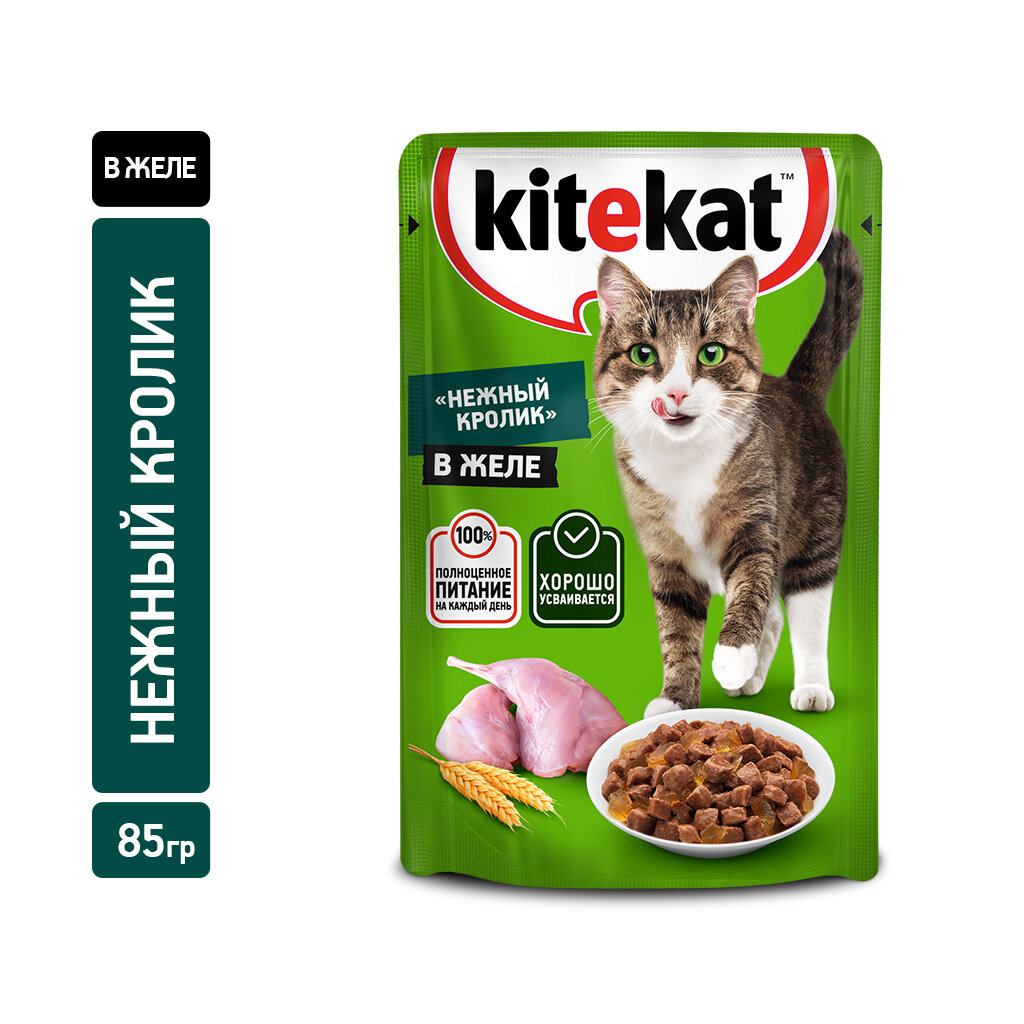 Kitekat Влажный корм для кошек «Нежный кролик» в желе 85г 10236430 0,085 кг 53168 (18 шт)