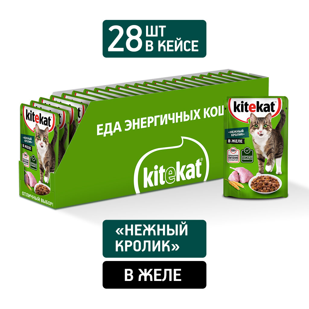 Влажный корм для кошек Kitekat™ «Нежный кролик» в желе, 28 шт по 85г