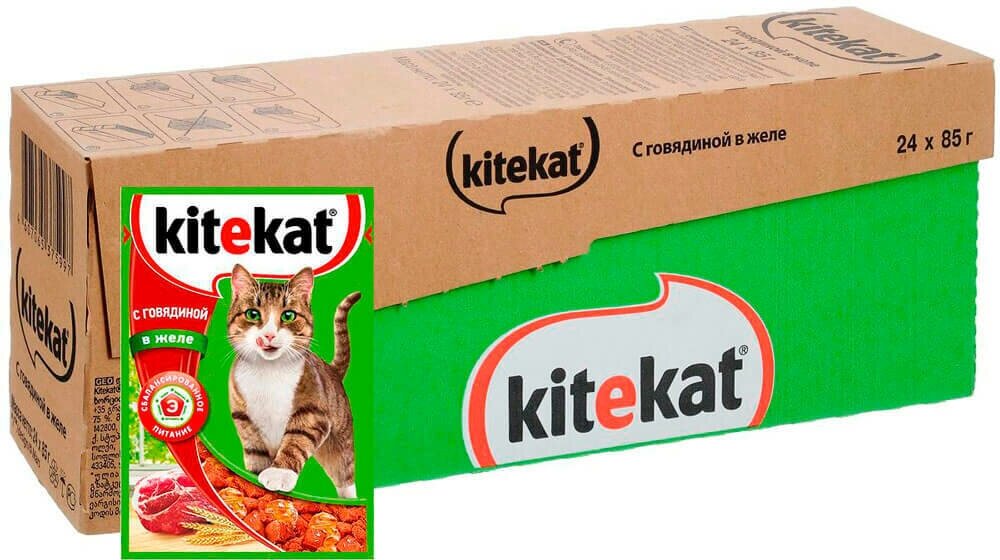 Корм для кошек KITEKAT говядина в желе пауч 85г (упаковка - 28 шт)