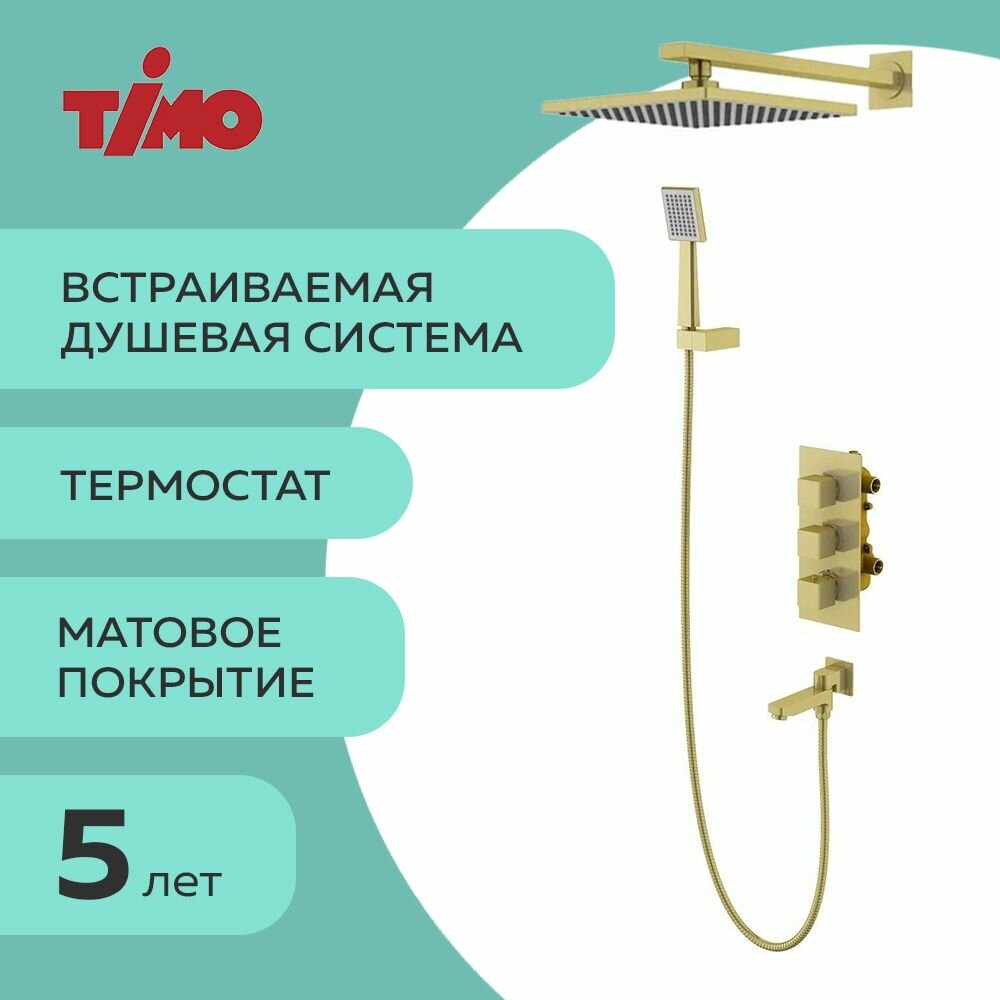 Timo Душевая система встроенная с термостатом Timo Tetra-thermo (SX-0199/17SM) золото матовое