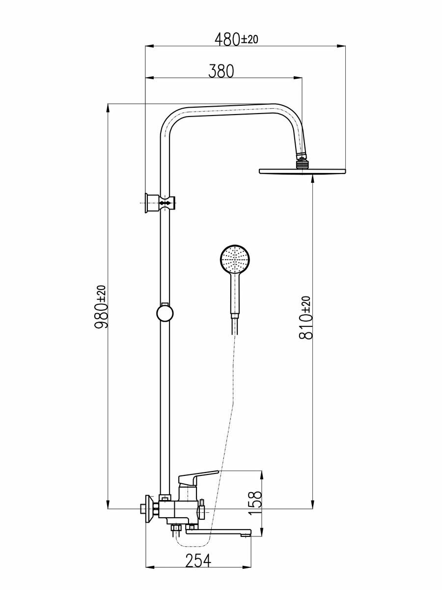 | Дополнительная информация | высота стойки для душа: 1250 мм; диаметр верхнего душа: 230 мм |