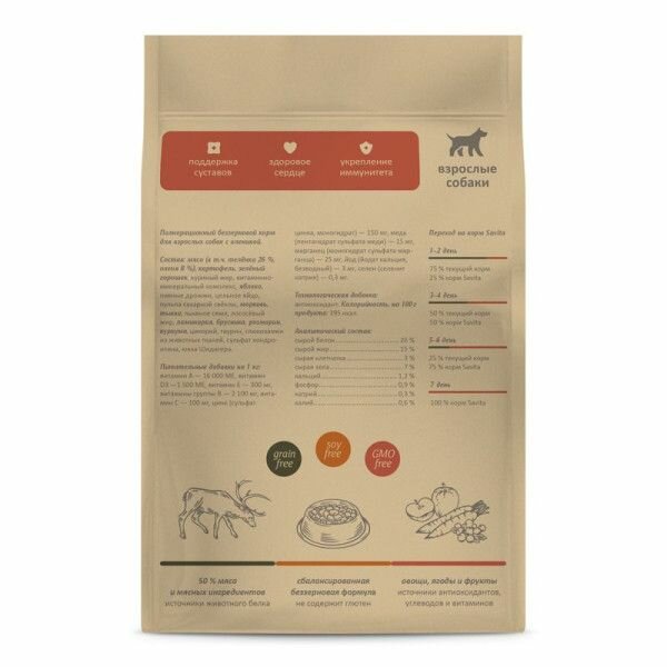 SAVITA беззерновой корм для взрослых собак с олениной, 4кг