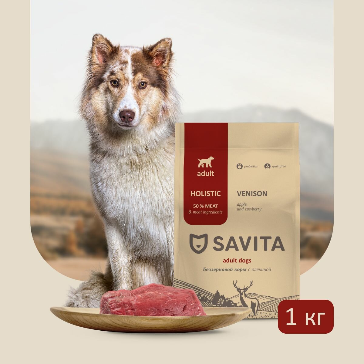 Корм SAVITA беззерновой корм для взрослых собак с олениной 1 кг