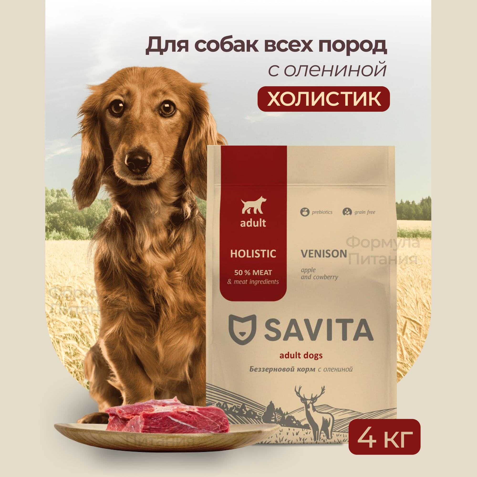 Корм сухой SAVITA, беззерновой, для взрослых собак с олениной, 4кг