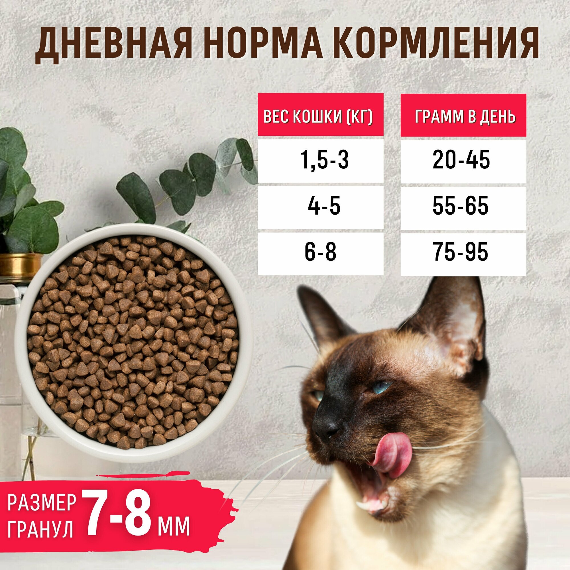 | Дозировка | для кошки среднего веса 4-5 кг: 55-65 г в день |