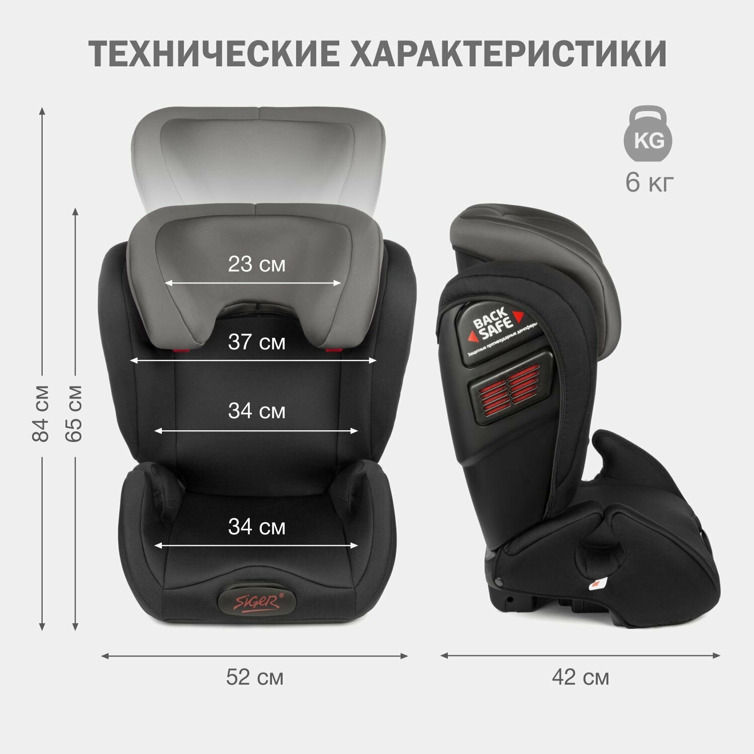 Автокресло детское поворотное Siger Дельта от 15 до 36 кг, черно-серое интересное: