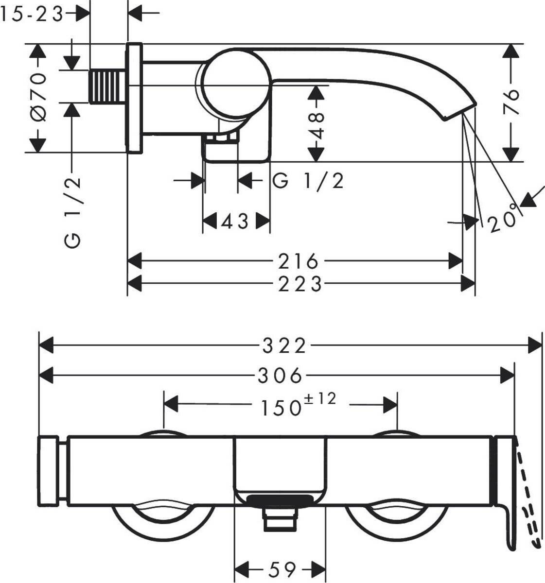Смеситель Hansgrohe Vivenis 75420000 для ванны, настенный, хром